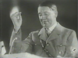 Boaz Arad, an Israeli video artist, has created in 2000 the video works “Marcel Marcel” and “SAFAM” [mustache, in Hebrew]. Both works involve specific manipulations of the same segment of historical film footage documenting Hitler as he addresses a crowd. For Arad, who was born in 1956, and for many members of his and the next generation, such clips would have become familiar, visually and acoustically, through their function as markers of official memory. Arad manipulates the historical symbol of Hitler, isolates him from the background of both the context of the symbol and the actual film background, and gives him a photographic retouch by erasing his famous moustache.